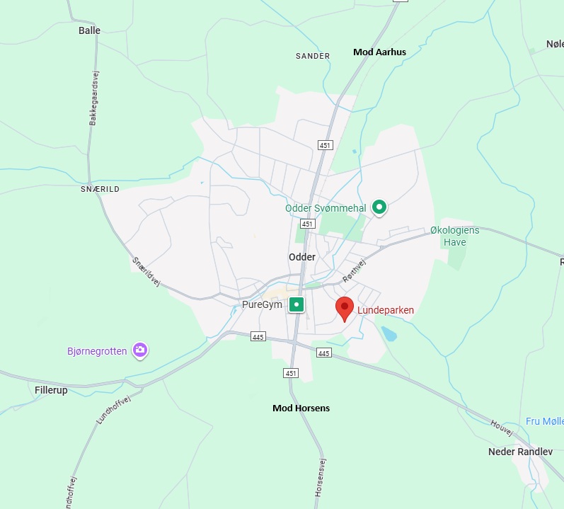 På nedenstående kort kan du se hvor vores andelsboligforening ligger i Odder by.